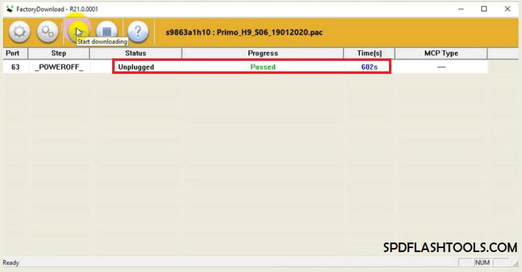 - After that, Click third or “Start Download” icon to start Flashing the firmware.